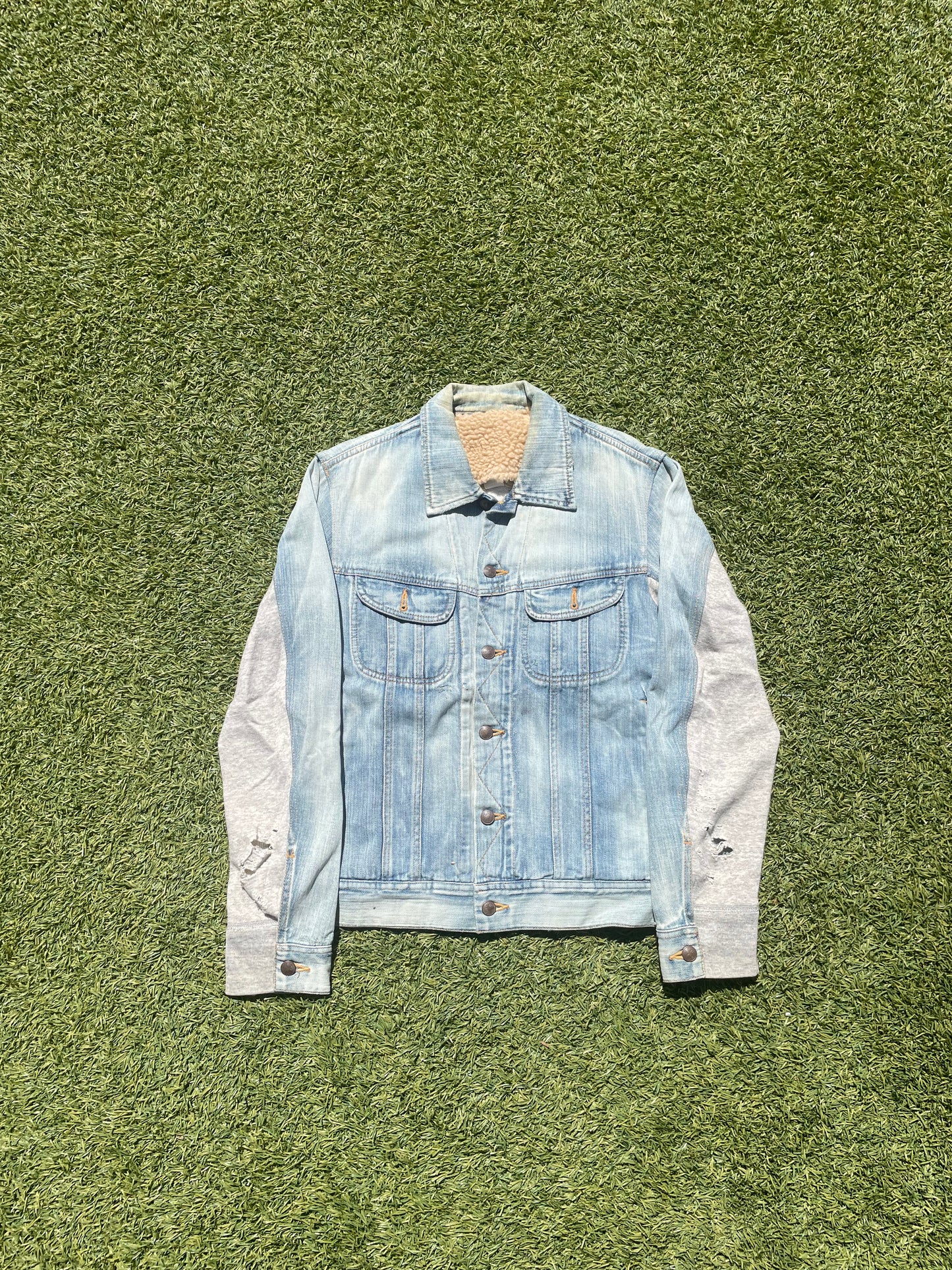 Miharayashurio Distressed Hybrid Sherpa Denim Jacket