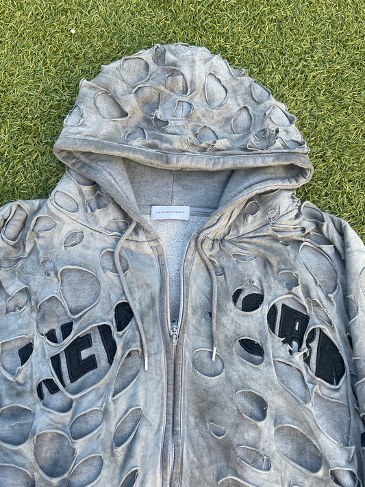 Alexander Digenova “New York” Double Layer Distressed Zip Up Hoodie