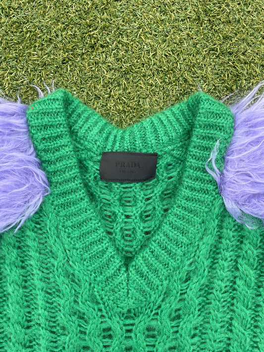 FW19 Prada Mohair Fur Fisherman Sweater (Green/Purple)